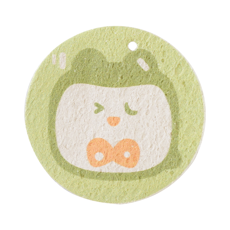 Permiteți-mi să vă arăt o altă formă de burete de lemn pentru pui, buretele de celuloză comprimat. Acesta este produs din bumbac din pulpă de lemn după presare la cald la temperatură ridicată. Buretele de celuloză comprimat nu numai că păstrează toate avantajele buretelui de bumbac din pulpă de lemn, după apăsare, reducem volumul buretelui pentru a reduce taxa de transport, de asemenea, putem imprima logo-uri sau alt design pe suprafață. Asta face curățarea mai amuzantă.