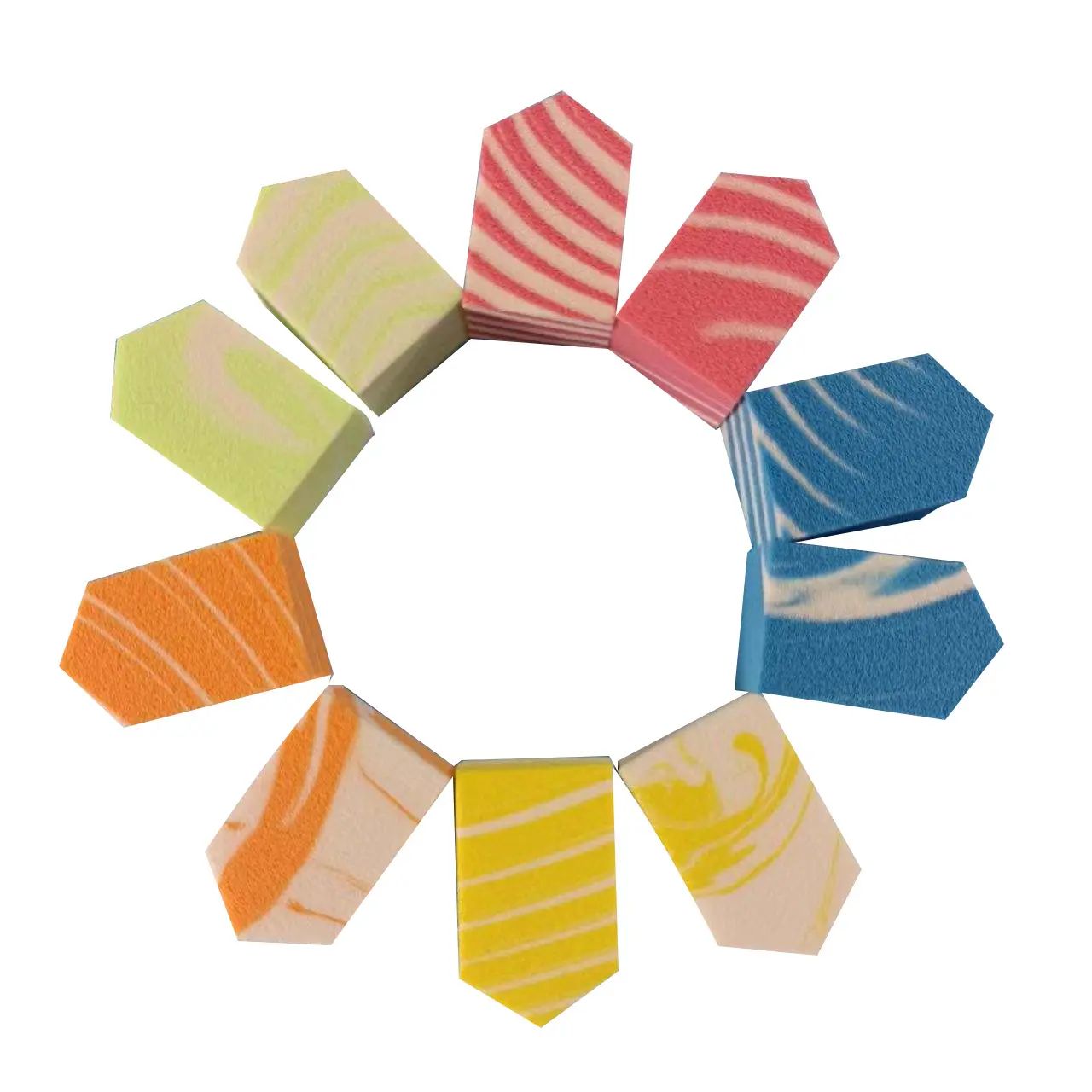 Powder Puff: este un instrument de machiaj, pudră generală, iar cutia de pudră va conține pudră, bumbac și materiale de catifea, folosite pentru retușarea fondului de ten și a produselor cosmetice. Funcție: Sponge Powder Puff este mai potrivit pentru utilizarea apei, convenabil și uniform pentru a îndepărta fondul de ten lichid. Forma triunghiulară ușurează ungerea colțului ochiului și al nasului și în alte locuri. Pudra umedă și uscată este în general circulară sau dreptunghiulară, indiferent dacă este umedă sau nu, poate fi pudră umedă și uscată pe față. Cum se folosește: 1. În primul rând, aplică crema pe toată fața, începând cu frunte și obraji, urmată de colțurile gurii și zona bărbiei. 2. În continuare, folosește o latură a puful circular pentru a împinge separarea, în ordinea în care trebuie să împingi din interior spre exterior. Apăsând puful de pudră cu degetul arătător și împingând-o în afară în același timp, va promova absorbția și lipirea uniformă a separării. 3. În continuare, îndoiți puful de pudră în jumătate, scufundați-l în niște cremă de izolare și apăsați ușor părțile laterale ale nasului și colțurile gurii. La final, aplicați o cantitate mică de cremă pe puful de pudră și apăsați ușor pe pleoapă.