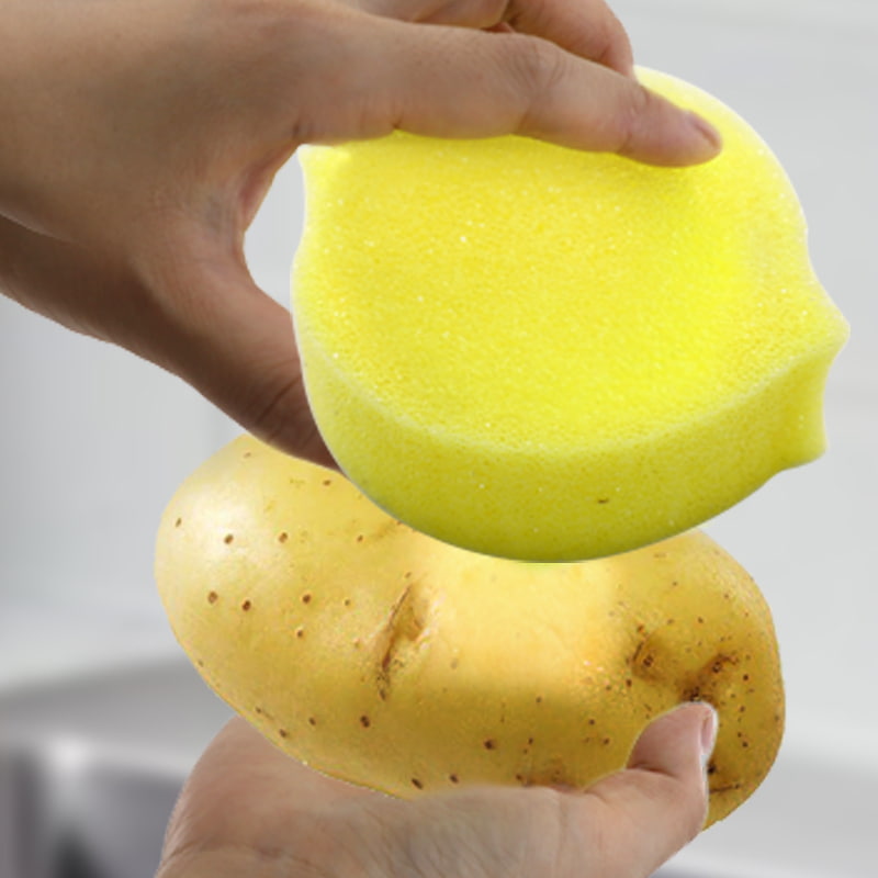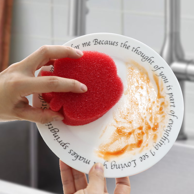 Se înmoaie atunci când este expus la apă caldă: Când temperatura apei este peste 32 ℃, buretele devine rapid moale și poate curăța ușor suprafețele delicate (cum ar fi straturile antiaderente pentru oale, sticlăria, fructele), evitând zgârieturile.